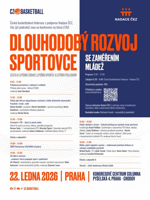 Česká basketbalová federace s podporou Nadace ČEZ, Vás zve na pokračování úspěšné Konference LTAD-Dlouhodobý rozvoj sportovce, tentokrát se zaměřením na mládež.
